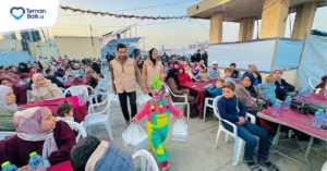 Untuk menambah keceriaan, kegiatan berbagi iftar ini juga menghadirkan hiburan sederhana berupa pertunjukan aksi badut yang menghibur anak-anak. Tawa dan senyum anak-anak Gaza menjadi momen berharga di tengah situasi duka yang masih mereka rasakan.